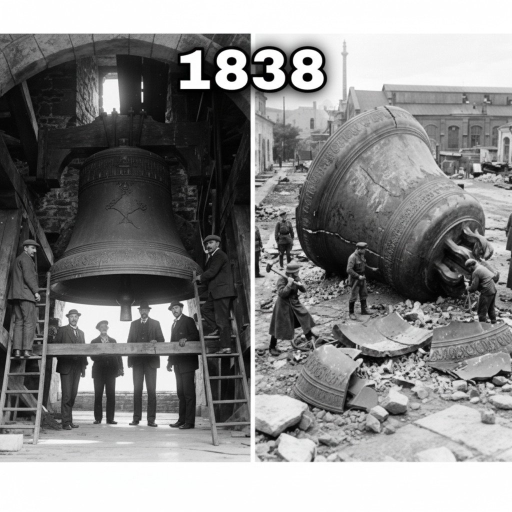 Za žiadnych okolností sa ich nesmie dotknúť. Podpery sú potichu odrezané. Zvedavý mladý robotník nájde malý, zabudnutý zvon, ktorý nie je uvedený v inventári. Poklepe naň kľúčom. Zvuk je vysoký, okolo 350 Hz. Nič sa nedeje. Smeje sa. Znova útočí. Majster v zúrivosti uteká.