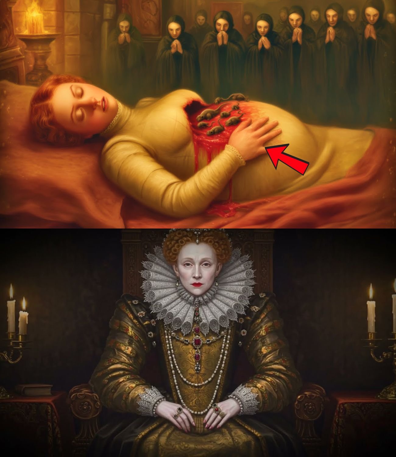 Začnime tým, čo sa v tej miestnosti skutočne stalo. Richmondský palác zaváňal smrťou niekoľko týždňov predtým, ako Elizabeth zomrela. Nebol to čistý zápach choroby, ale niečo iné, niečo zhnité. Sluhovia drhli podlahy levanduľou a rozmarínom, pálili kadidlo, až im dym zamrzol oči, ale nič nefungovalo. Vôňa vychádzala z kráľovniných komnát ako živá vec. Vo vnútri sa Elizabeth stala duchom a prenasledovala svoje vlastné telo. Predstavte si ju: ženu, ktorá kedysi ovládala celé miestnosti jediným pohľadom, teraz sa opierala o vankúše, pretože jej nohy ju už nepodporovali. Jej tvár, tá slávna tvár, ktorá inšpirovala tisíc portrétov, bola pokrytá bielou pastou tak hustou, že praskla, keď sa pokúsila hovoriť. Ale pod tou vrstvou bolo niečo iné; verte mi, ešte nie ste pripravení.