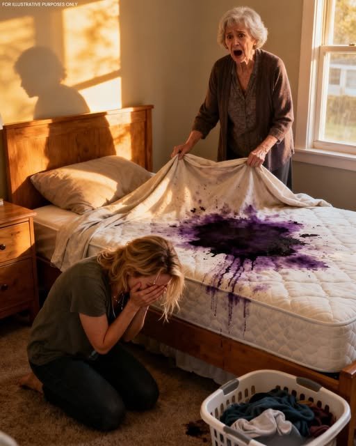 Jedného rána som predstieral, že idem do obchodu s potravinami, ale otočil som sa späť cez uličku. Ticho som vošiel do chalupy, srdce mi bilo od pocitu viny a zvedavosti. Najprv ma zasiahla vôňa – ostrá kovová vôňa, ktorá nepatrila mydlu ani bielidlu. Priblížil som sa k posteli a zdvihol som plachtu. Pod ňou sa na matraci rozprestierali tmavé škvrny. Zadržala som dych. Bola to krv. Nie pár kvapiek, ale veľké, staré škvrny, ktoré sa nedali vyprať.